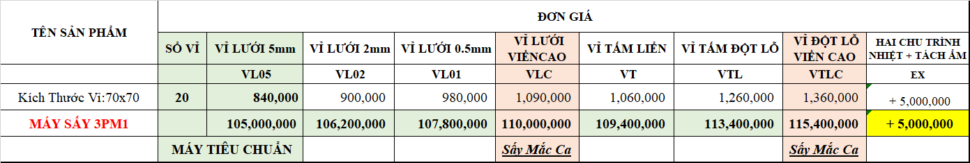 - Nhiệt độ sấy cao nhất: 100 độ C