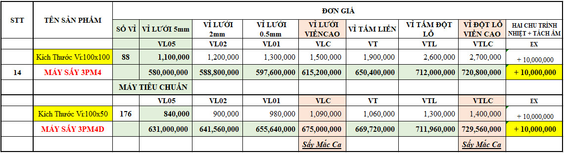 - Nhiệt độ sấy cao nhất: 100 độ C