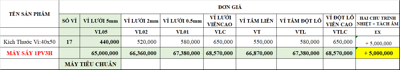 - Nhiệt độ sấy cao nhất: 200 độ C