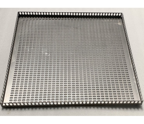Khay sấy vỉ tấm lỗ viền cao VTLC: Đây cũng là một dòng sản phẩm khay sấy chuyên dụng chịu lực, lỗ oval 8x16mm, viền cao 40mm. Sản phẩm phù hợp với ứng dụng sấy các sản phẩm kích thước lớn, cần xếp 2 lớp như sấy hạt mắc ca, hạt dẻ,... Tuy nhiên, khay sấy sẽ kém hiệu quả khi bạn sấy các sản phẩm 2 mặt đồng thời do độ che phủ mặt dưới khá lớn.
