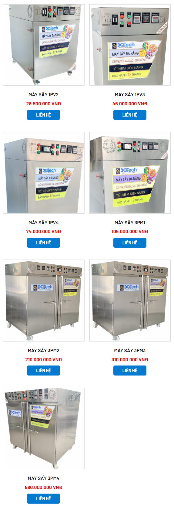 Quý khách hàng có thể tìm hiểu và tham khảo các dòng tủ sấy thực phẩm được sản xuất và phân phối bởi DQTech: MÁY SẤY LẠNH, MÁY SẤY NHIỆT ĐỘ CAO.