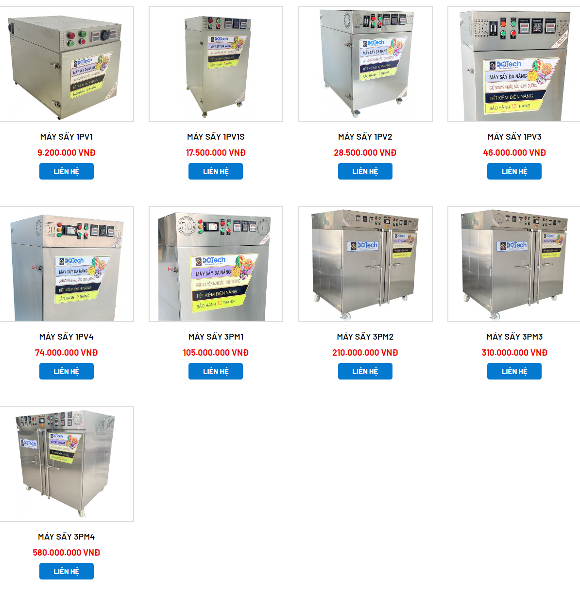 Cuối cùng, thương hiệu DQTech cho ra đời nhiều loại máy sấy với công suất khác nhau, đáp ứng nhu cầu người dùng từ quy mô gia đình, cơ sở sản xuất nhỏ đến nhà máy, nhà xưởng lớn.