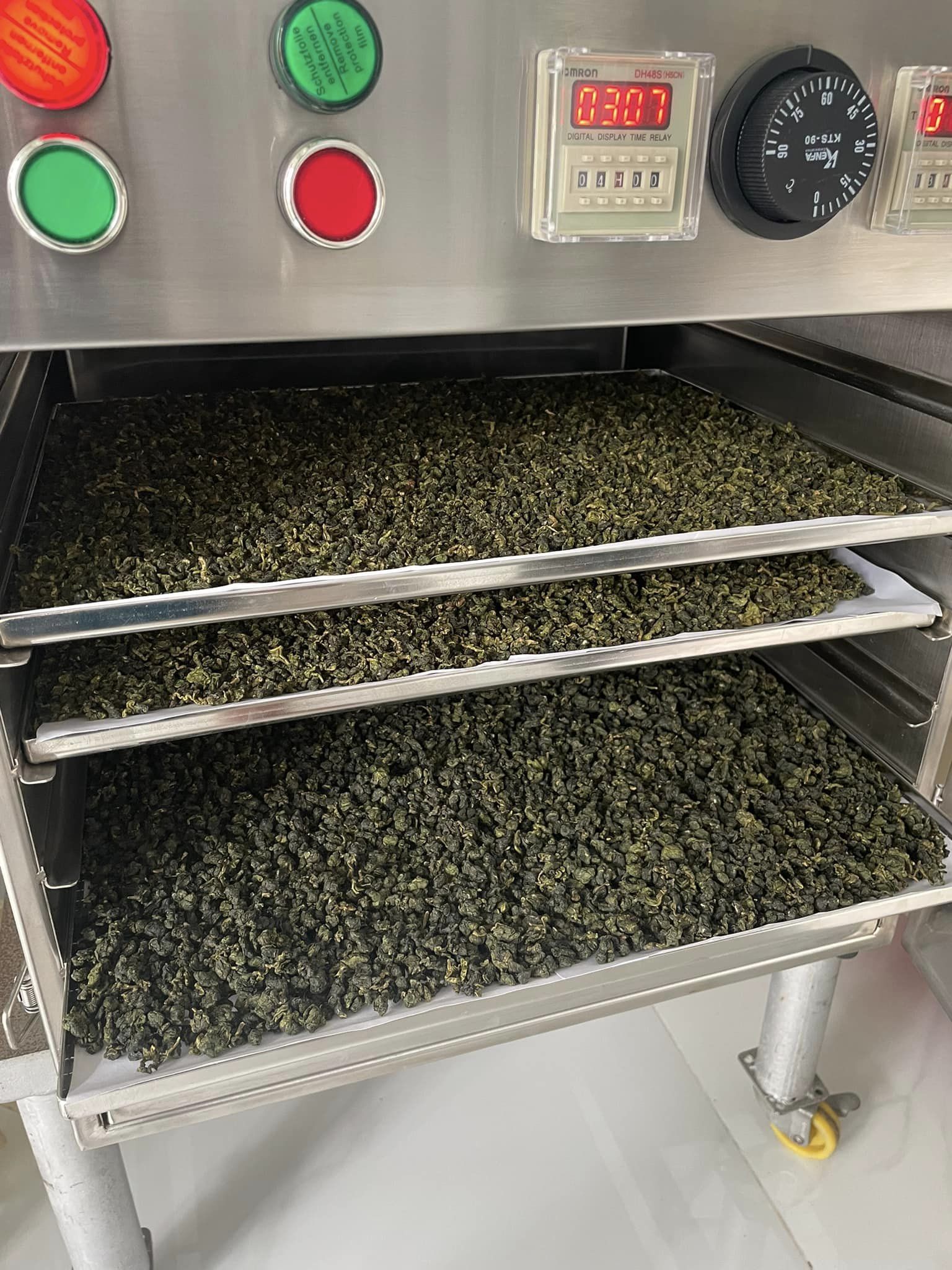 Sấy trà: Sấy ở nhiệt độ cao nhàm phá vỡ những tàn dư của các chất lên men còn lại khi vò chuông, tạo điều kiện cho việc lên men và phản ứng sinh hóa hoàn toàn bị đình chỉ, hương thơm của chè được đảm bảo ổn định.